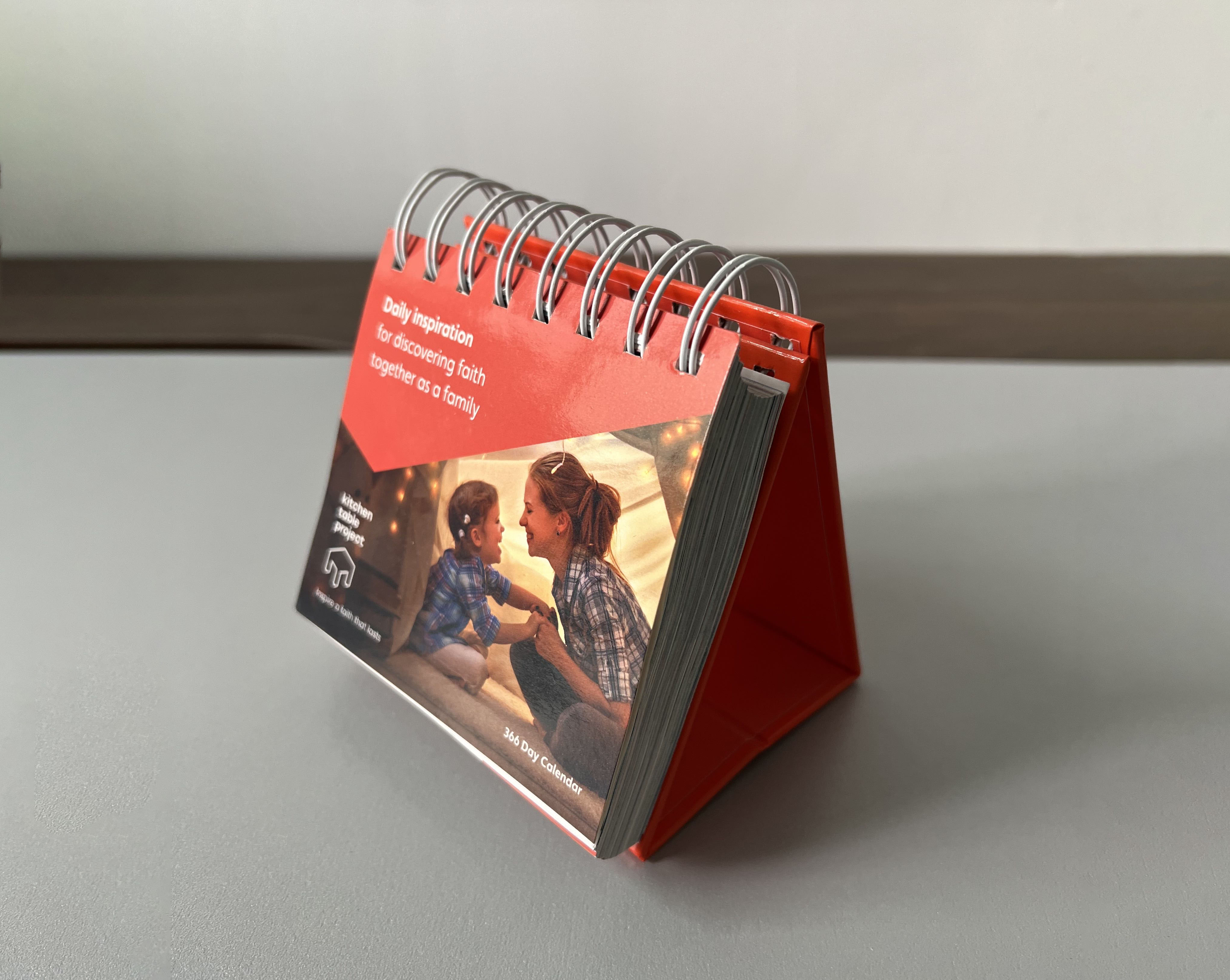 Desk calendar 1/2" wire-O. Full color throughout. 184 sheets.