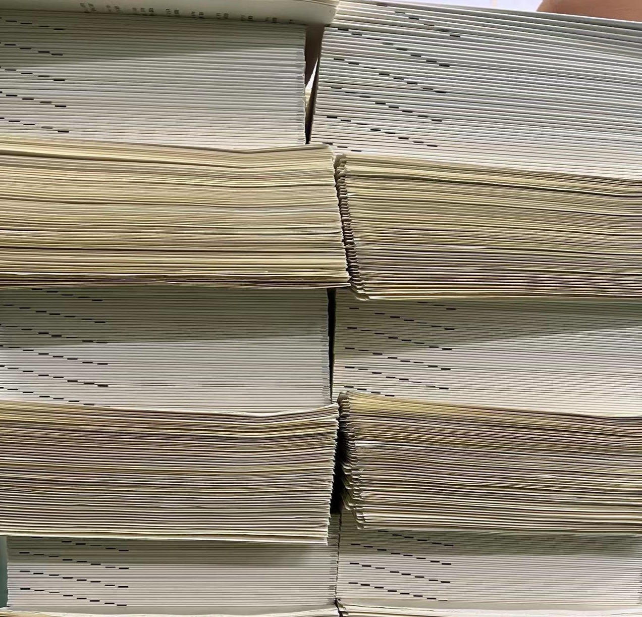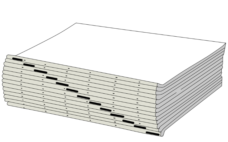 After the folding process is finished, the signatures will then be taken for collation. Depending on the chosen binding method, the collator will arrange the signatures in the correct page sequence. Subsequently, these stacks of signatures will be taken to the collation machine, where the individual signatures are organized into their appropriate page sequence. These newly arranged stacks of signatures are now called "book blocks."
