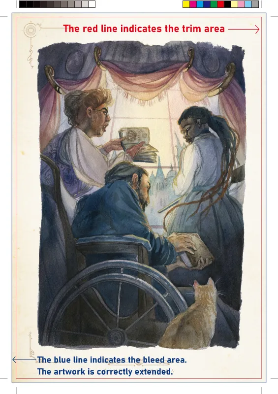 Bleed is an essential print area outside the document that must be added to your artwork before it's sent off for print. It is an extension of an image or color(s) that continues beyond the finished trim size.
