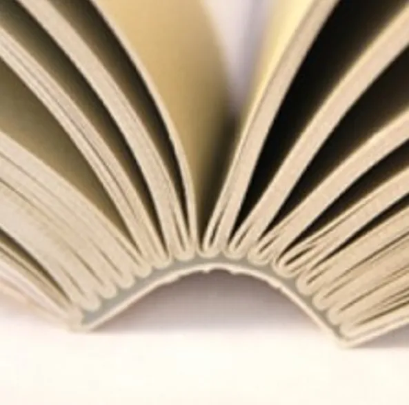 Also known as softcover binding, paperback and limp bound. The book cover is drawn on the book block with glue and usually with hinge scoring. Hinge scoring is a procedure in which extra front and back glue is applied approximately 3mm away from the spine, and a score is created on the covers at the edge of this extended glued area. This process facilitates easier book opening and reduces pressure on the spine when turning pages.