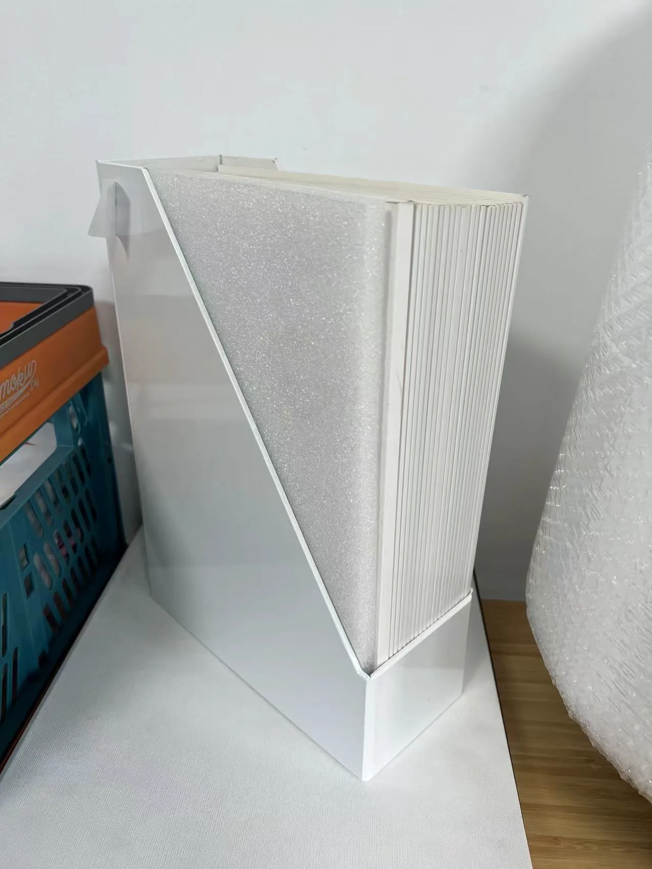 (Dummy for a set of 24 softcover books and a book holder with EPE foam)